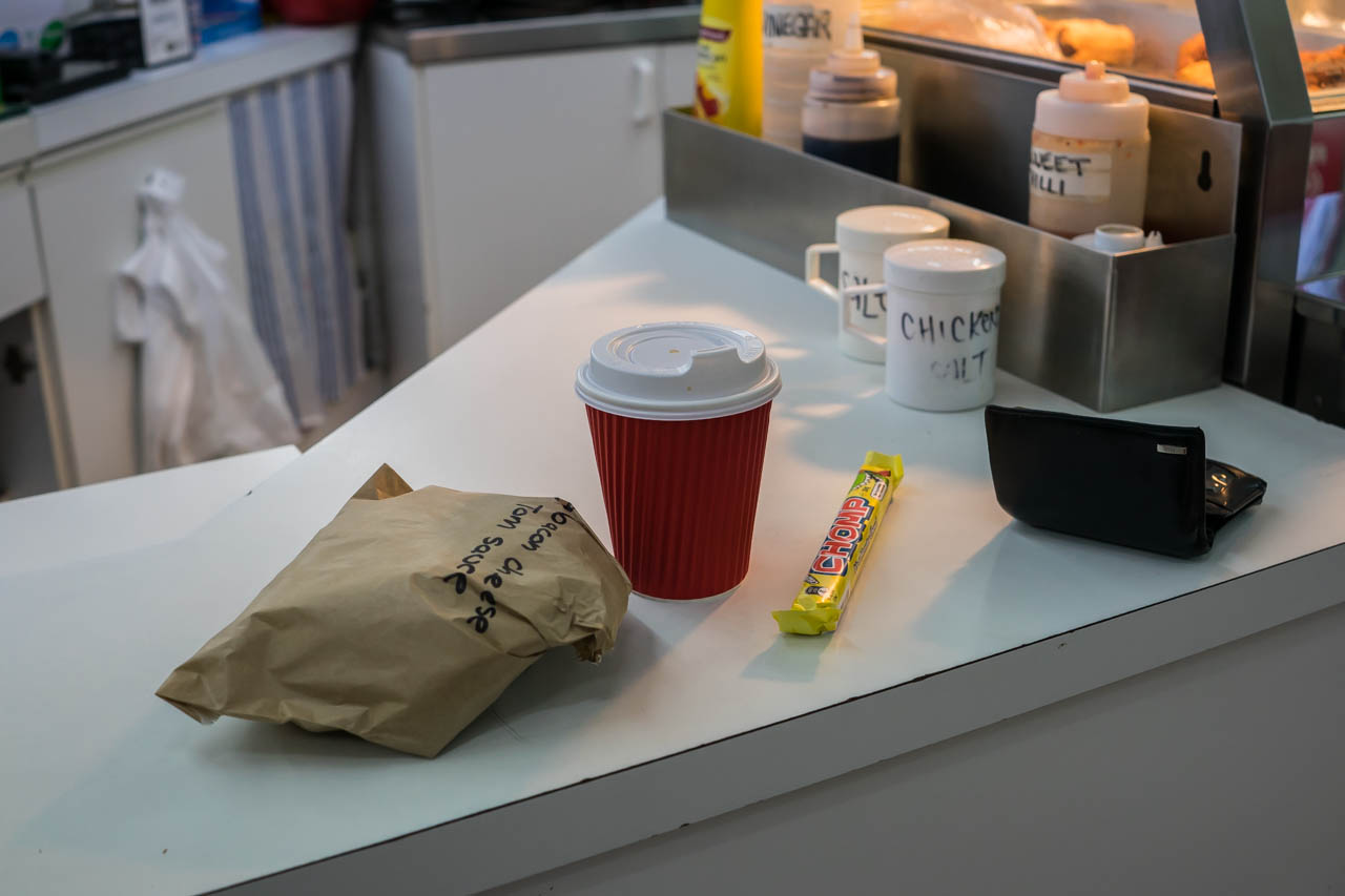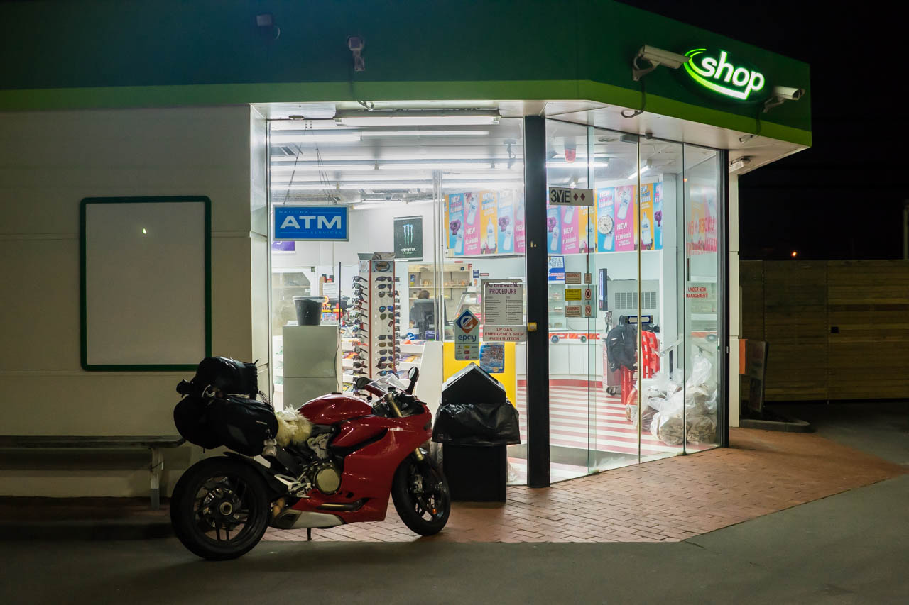 I made my way towards Warrnambool, where the riding temperature was freezing, but still miles ahead of what I had to endure at the park. My main aim was to find any servo that was open at all, as all the others in the smaller towns were closed. Eventually, I reach the BP station at Warrnambool, where a kind middle-aged lady was working the overnight shift and was happily accommodating to me. Over the night, she served me hot food and drinks, and there was even a bench and stool which came into good use. Using them as my sleeping arrangement, I call it a night inside the warmth and protection of a petrol station.