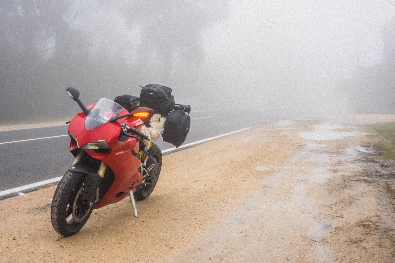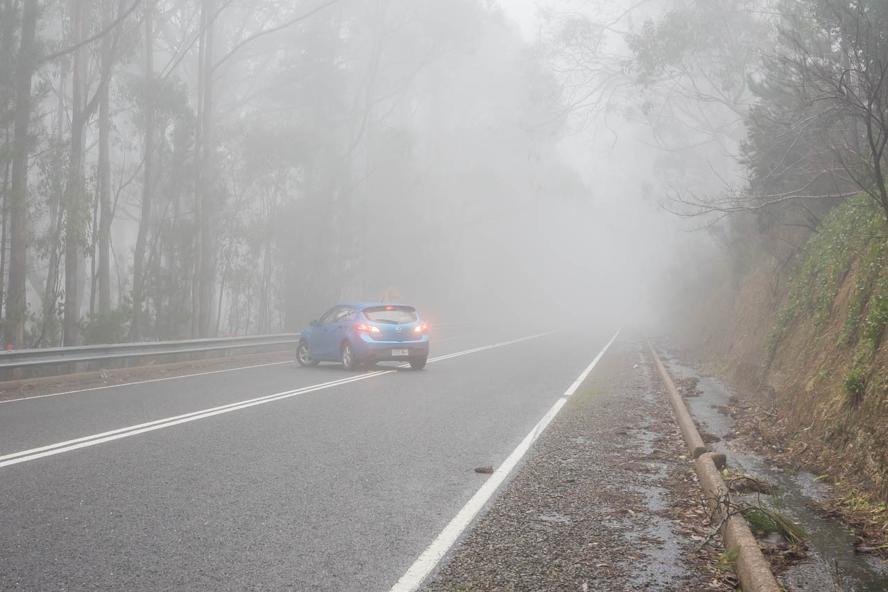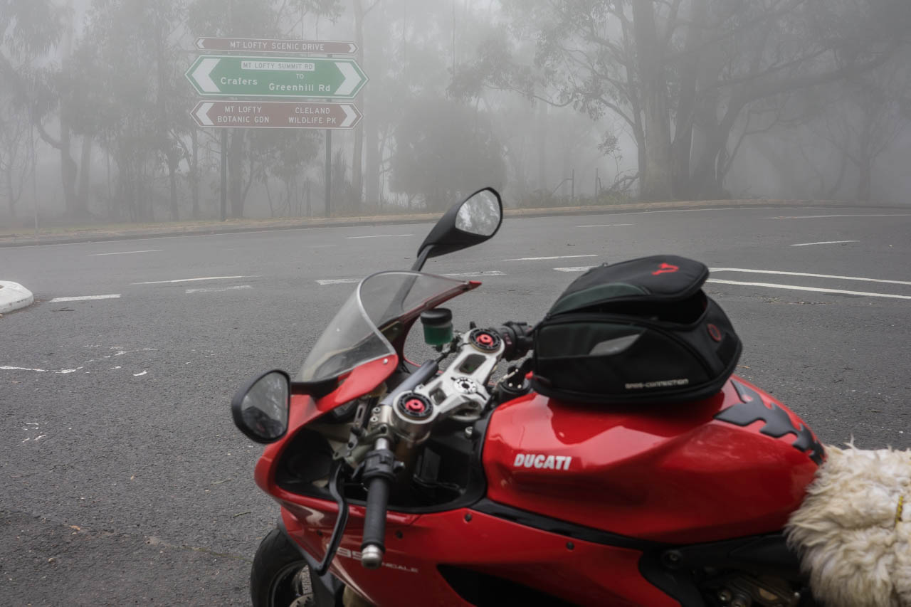 I make my way out of the Adelaide CBD and towards the hills of the outer city area, where clouds of fog were becoming increasingly dense, to the point where it was basically like it was raining. My whole gear was getting drenched, and my wet weather gear had to be used.
