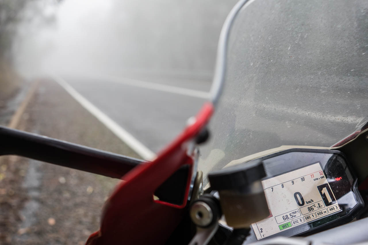 The sole intention on this day was to become completely accustomed to the Panigale. The roads were still wet, but the weather forecast looked promising, at least until the evening where another wave of torrential conditions would emerge, as I would later find out.
