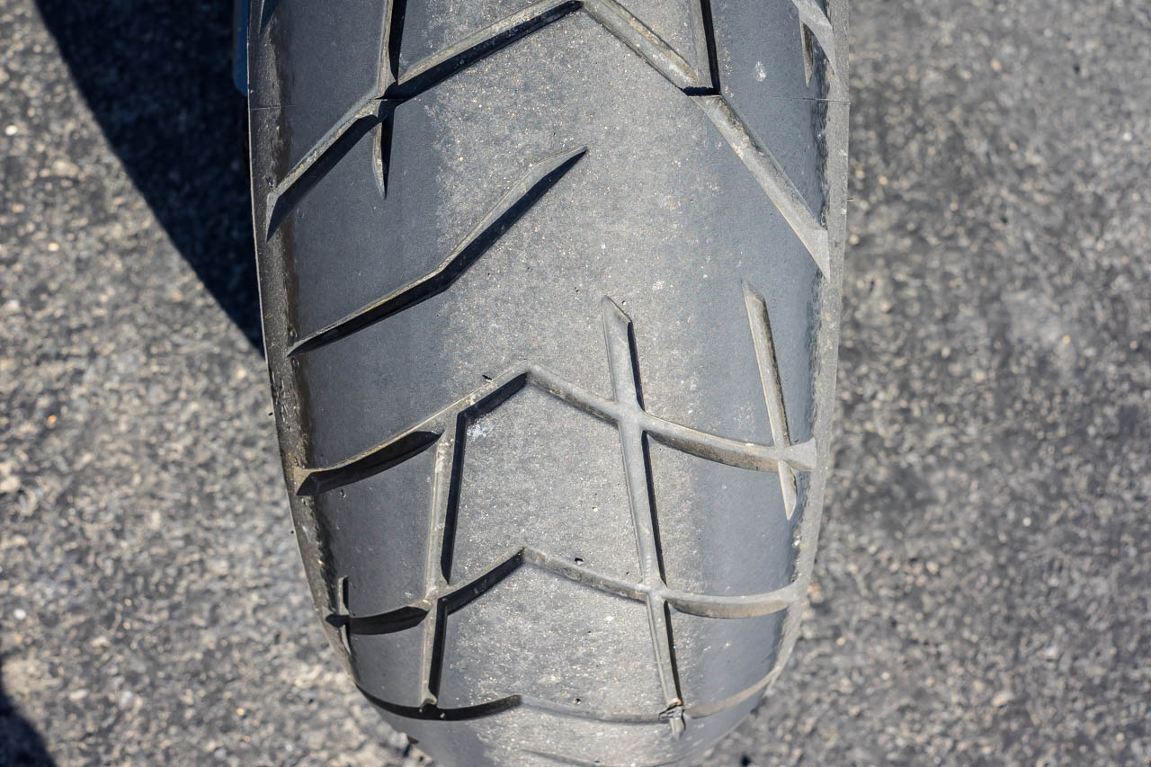 They are the Pirelli Scorpion Trail, which comes standard on the Multistrada 1200, Ducati’s adventure tourer. I regard it highly due to its combination of urban, country and gravel road capabilities.