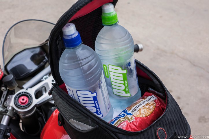 10/01/201610/01/2016davesviewpoint DSC07980 Brekkie for the day: A sausage roll and two bottles of water, one for the road.