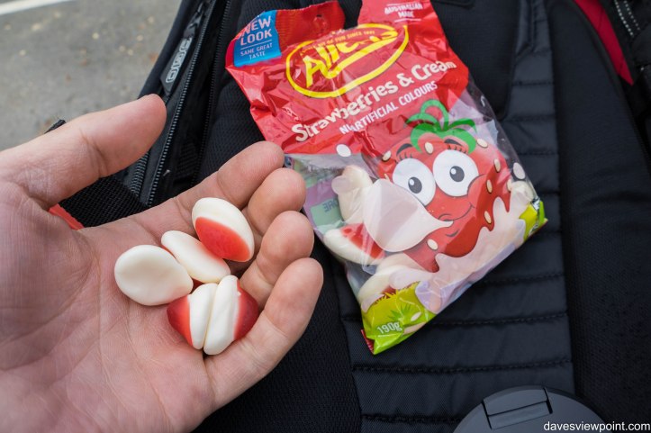 24/01/201625/01/2016davesviewpoint DSC08543 I regretted buying this bag of confectionery on the night before… but I’m glad I have them. Excess sugar to keep me rolling for the home run…
