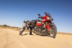 I came to an inevitable stop, as the rear tyre scrambled for grip, of which it had none. The more that I applied throttle to try and go forward, the further down I went into the sand. It didn’t matter how much or little gas I gave, the only difference it made was the rate in which I dug myself deeper into my own trench of doom. This was the exact moment when I thought I was definitely going to be stuck in the middle of nowhere for a long time, if not forever.